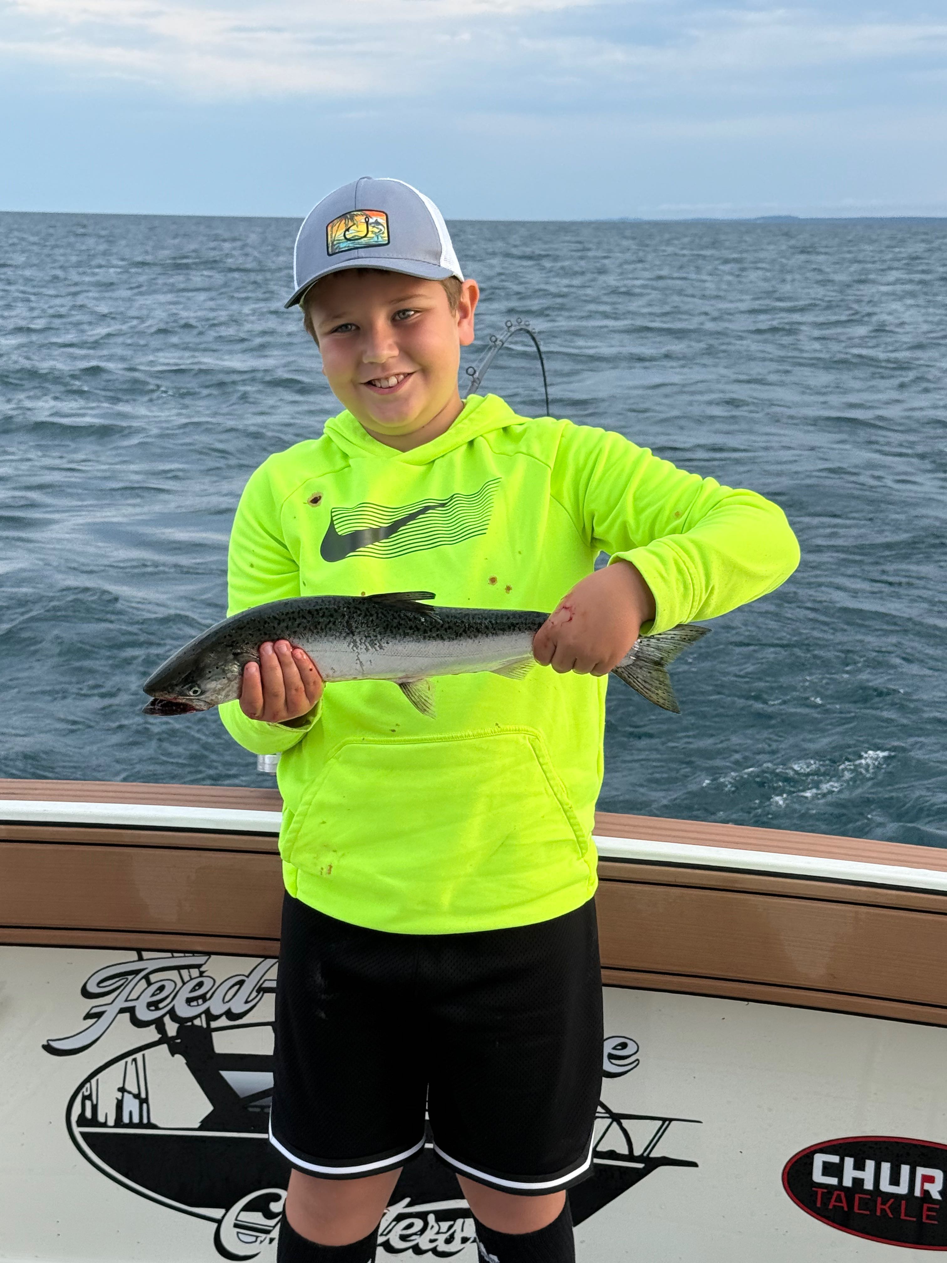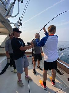 Discover the lively media gallery of Feed-N-Time Charters, where the excitement of fishing on Lake Michigan is captured in vivid photos and videos. From proud anglers holding impressive catches to peaceful scenes of the water, each image tells a story of the rewarding Muskegon fishing charters experience. The gallery showcases moments of family fun, friendly competition, and the variety of fish species like salmon, steelhead, and lake trout that make our trips memorable.